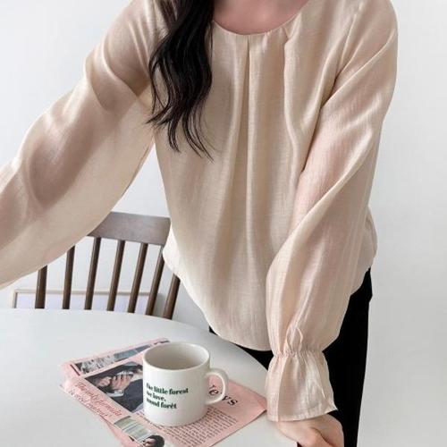 애플라인 골드 버튼 로맨틱 클래식 플리츠 쉬폰 블라우스