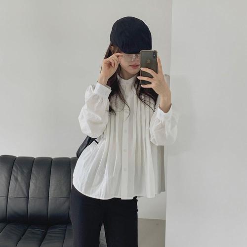 [옷자락] 여성 클래식 무지컬러 핀턱 헨리넥 블라우스
