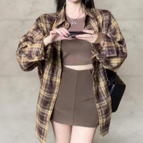 [다잇템]여성 베이직 클래식 남방 FW 격자 남방