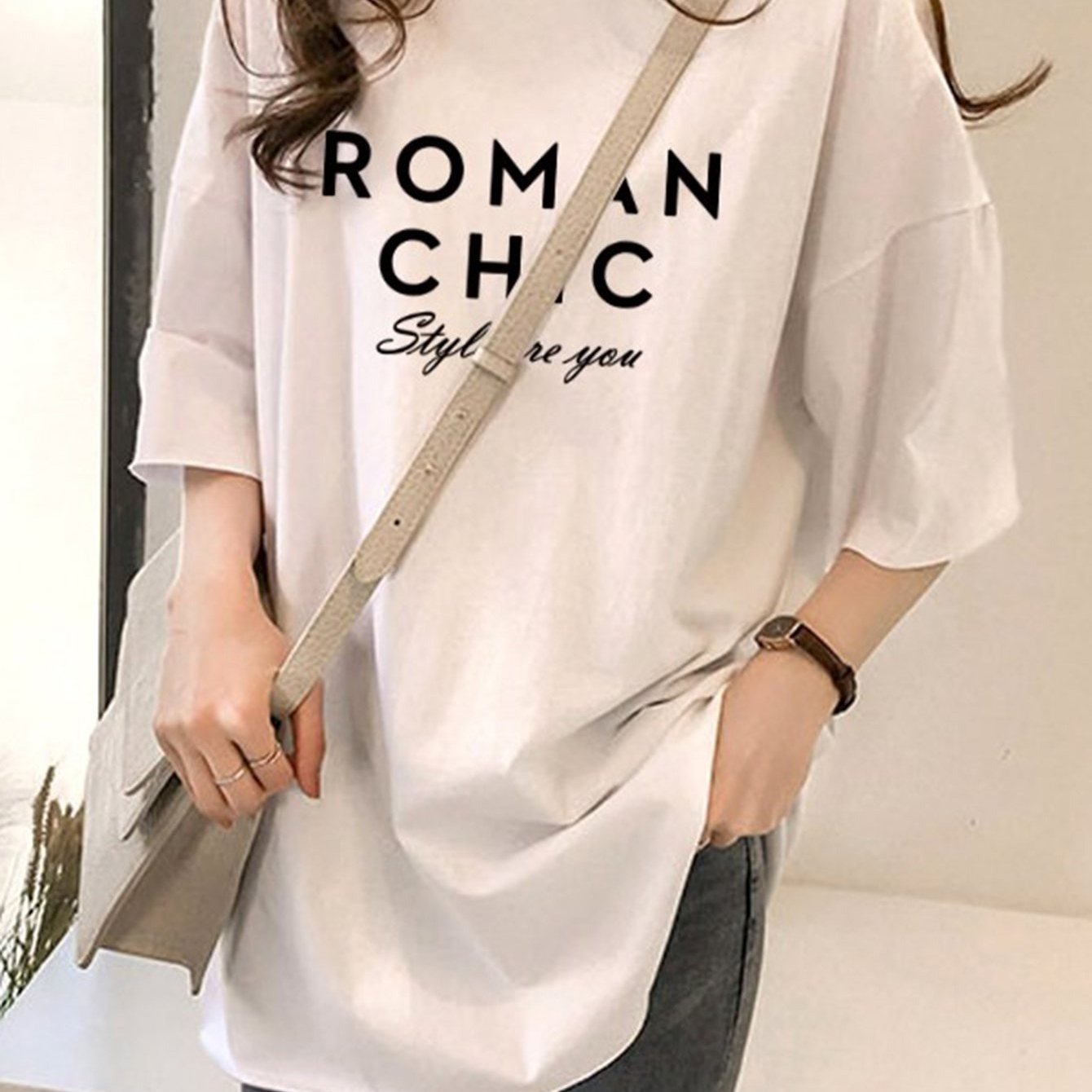 TEMU 스타일아유 여성용 오버핏 레터링 반팔 티셔츠|롱 박시핏|빅사이즈 자체생산|부드러운 데일리 티 TS352A