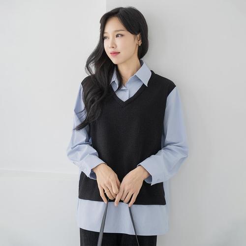 엄마옷 마담4060 클린조끼레이어드셔츠-QBL2510022-