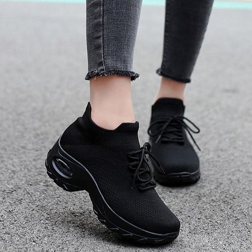 [에이치플러스몰]여자 키높이운동화 에어워킹화 스니커즈 올블랙 시크