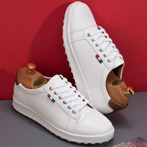 모아 레트로 남자 키높이 스니커즈 6cm 레더 가죽 남성 운동화 커플 신발 화이트