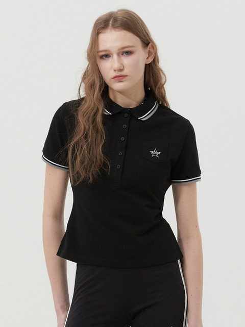 [키르시] 버튼 포인트 슬림핏 카라 티셔츠 [블랙]