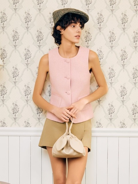 [로로안코] 램스킨 리본 호보_크림 (키세스 쉐입)