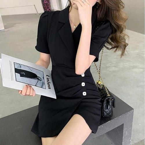 [신상오픈런]브이넥 반팔원피스 옆트임 숏기장 키작녀 슬렌더룩
