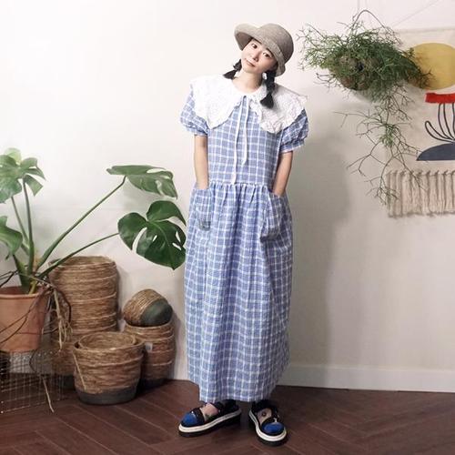 [앞머리]시원한 오버핏 체크 포켓 썸머롱원피스n721