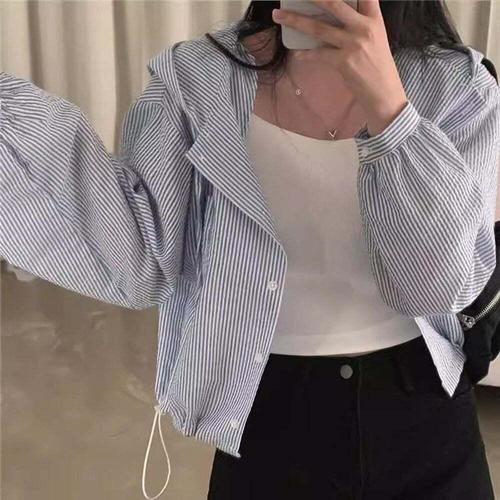 [오너클랜]인기상품 스트라이프 후드 셔츠 자켓 스트링 숏기장 간절기 데일리 아우터 [WFLXZ9I_260211]
