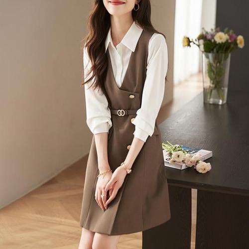 [패션이슈]셔츠카라레이어드벨티드원피스 LU00072v