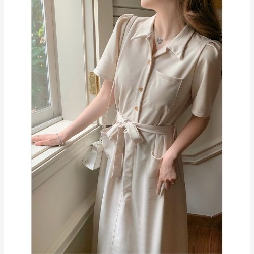 레이스업 우아하고 러블리한 카라 셔츠형 하객룩 원피스
