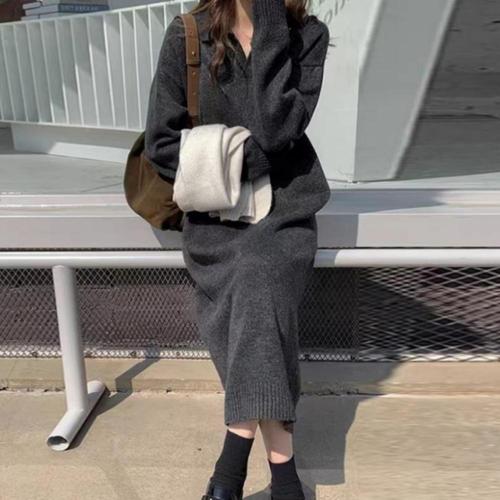 [오너클랜]인기상품 여성 임부복 루즈핏 체형 롱 니트 카라 브이넥 원피스 [WFLINZQ_260301]