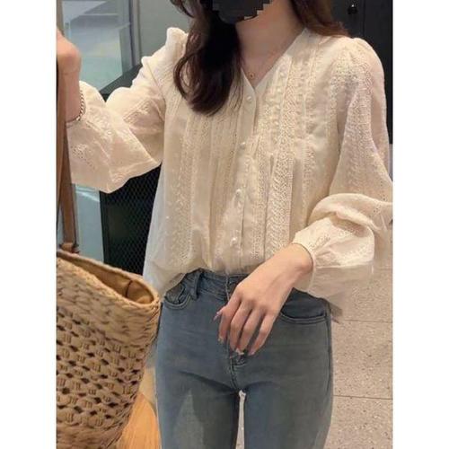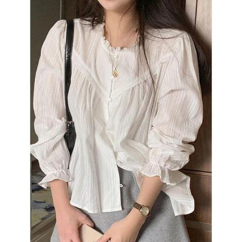 [키첼]마세르 레이스 프릴 끈 블라우스