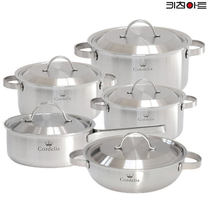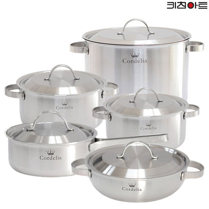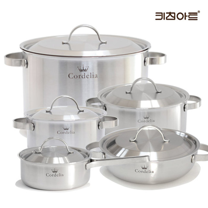 키친아트 키친아트 코델리아 통5중 스텐레스 인덕션 냄비세트 2종M(양20+전24)