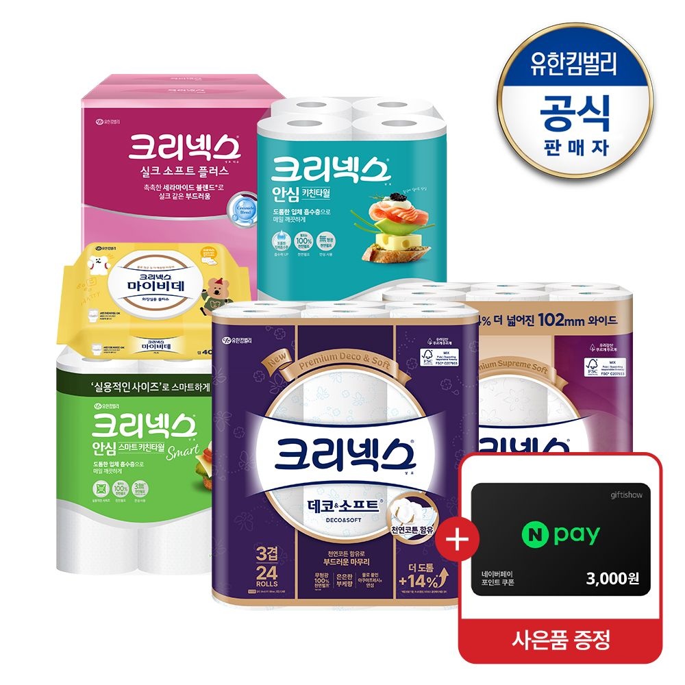 [11/3~5 N페이증정]크리넥스 화장지/마이비데/키친타올/각티슈/물티슈