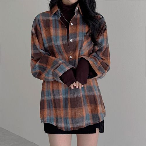 코키코키 / 슈슈 딥 컬러 빈티지 체크 루즈핏 남방