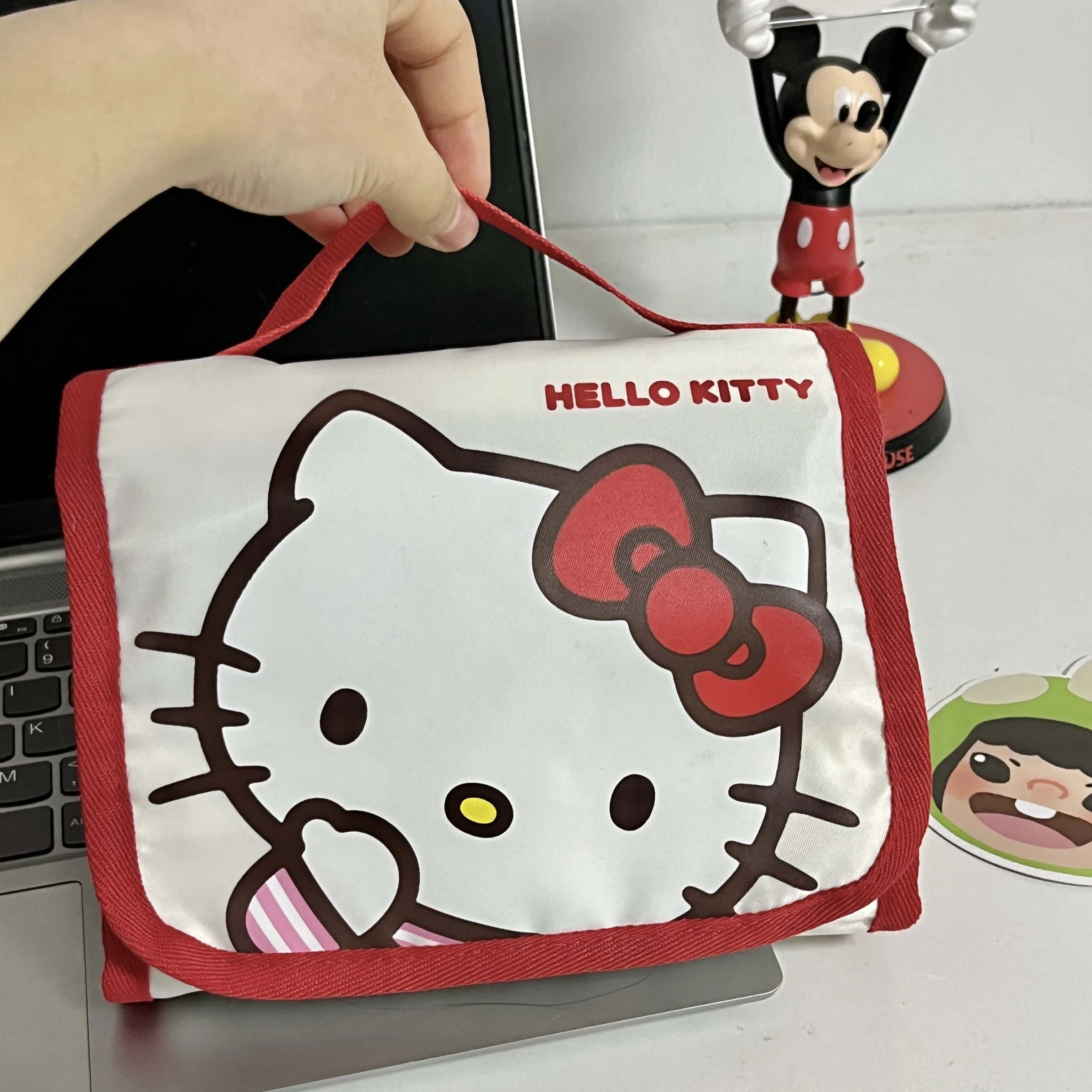 MINISO 헬로 키티 휴대용 메이크업 가방 귀여운 대용량 여행 화장실 소녀를위한 투명한 보관 가방
