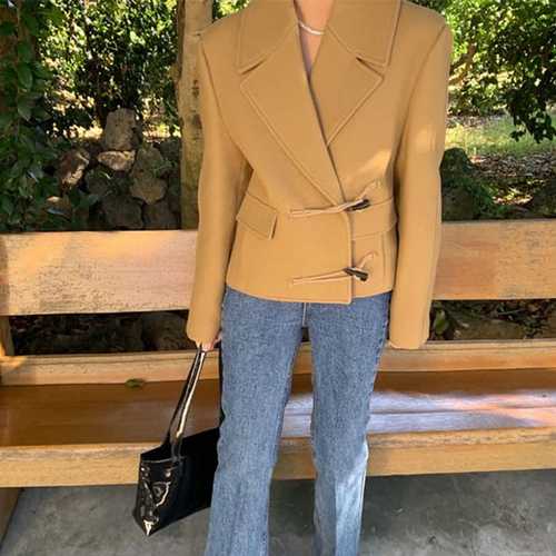 슈팅스타 / 카라넥 언발 떡볶이 단추 숏 모직 자켓