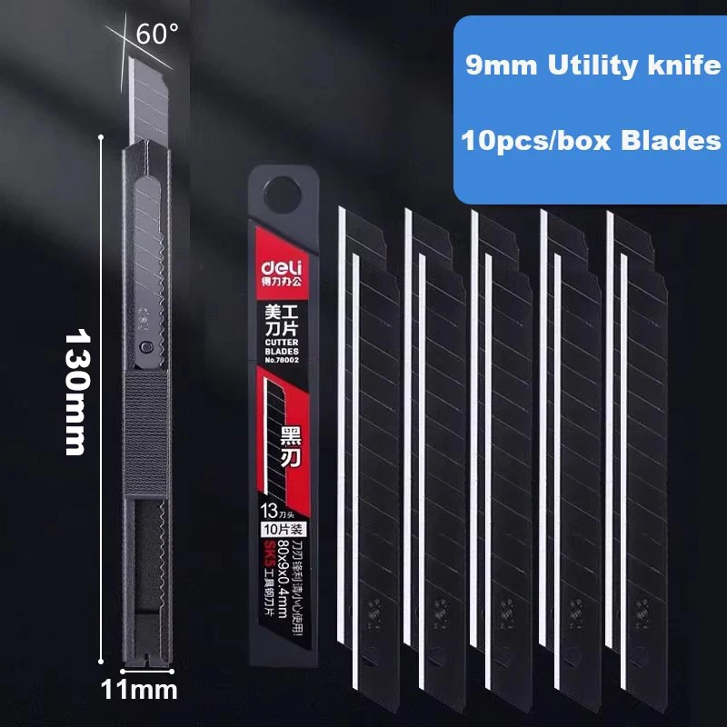 델리 유틸리티 나이프 세트 9mm SK5 금속 블레이드 포켓 나이프 절단 종이 상자 철거 익스프레스 나이프 홈 학교 용품