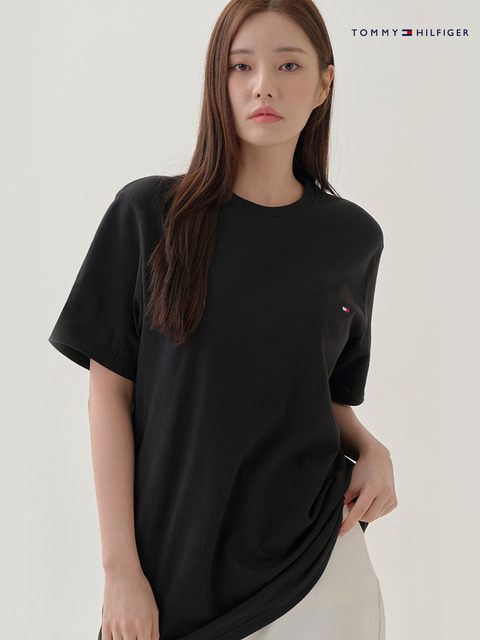 [타미힐피거] 타미힐피거 남녀공용 반팔티 코어 플래그 반팔 09T3139 블랙