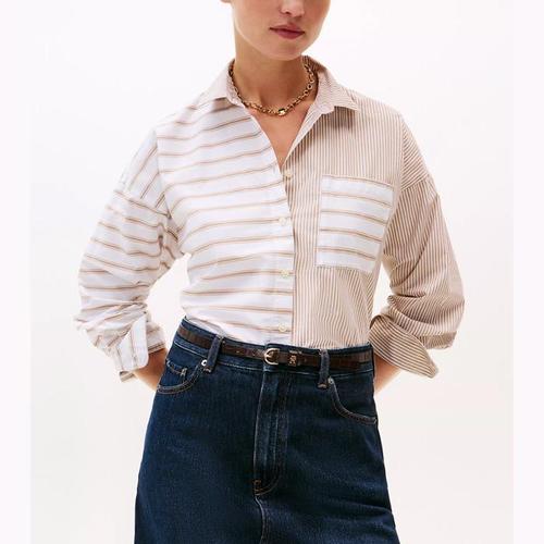 [해외배송] 타미 여성 릴렉스핏 믹스 스트라이프 팝린 셔츠 Azure