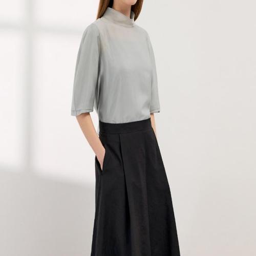 [에고이스트]하이넥 타이 포인트 밑단 밴딩 블라우스 (EQ3WB863)