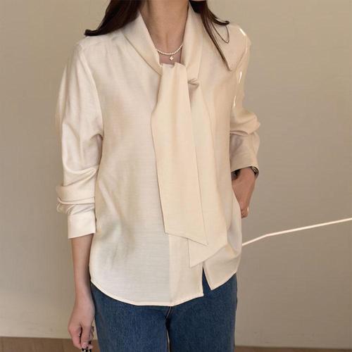 [문에이블]문에이블 여자 여성 봄 여름 타이넥 리본넥 오피스룩 하객룩 긴팔 실키 블라우스