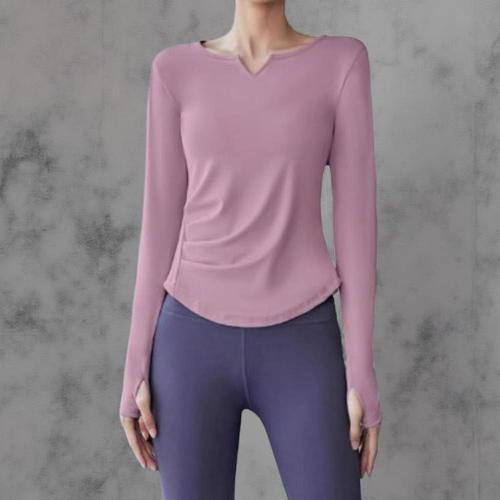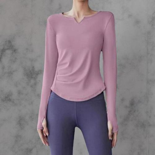 [옷자락]여성 운동 요가 스판 브이넥 셔링 타이트 긴팔티