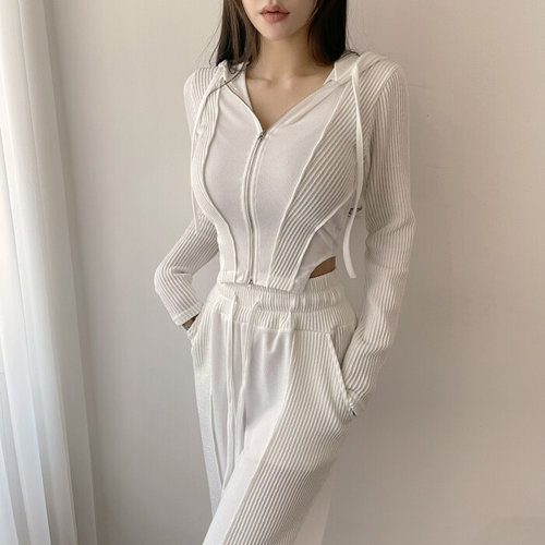 글램핏 / 타이트 핏 절개 골지 후드 투웨이 지퍼 집업 가디건 2