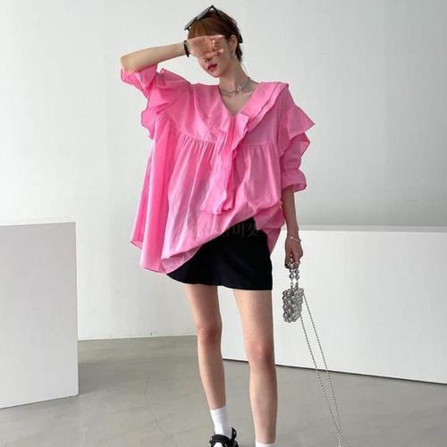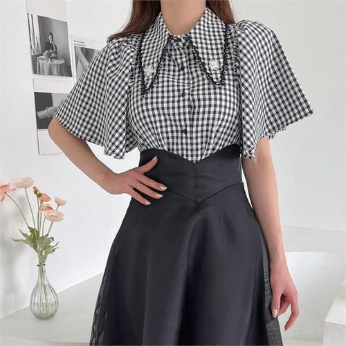 여자블라우스 여성 루즈핏 트임 반팔 셔츠 여름 가오리핏 남방 1P