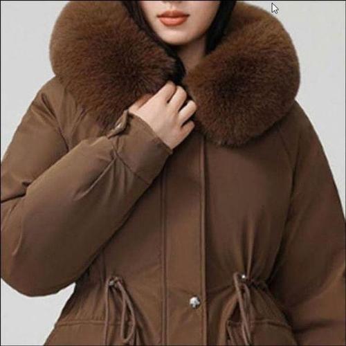 [셀러허브_여성트랜드패션]여자 탈부착 슬림핏 패딩점퍼 겨울 털 허리끈 후드 퍼 안감