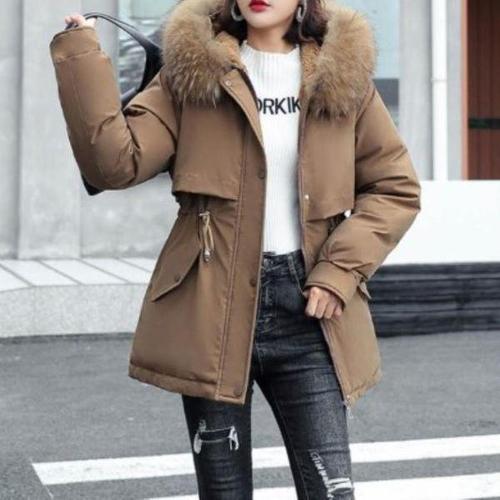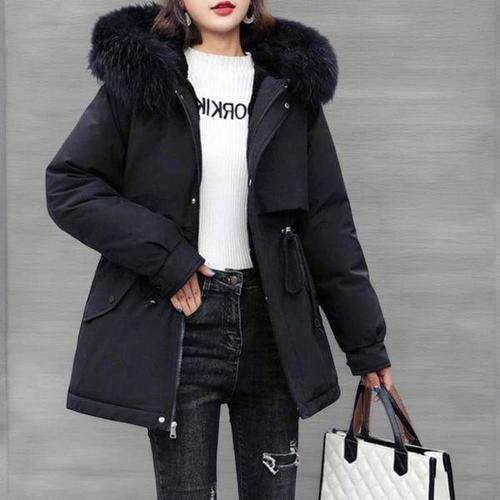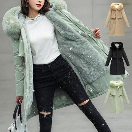 [신상오픈런]여성용 후드 탈부착 미디 길이 안감 퍼 패딩 점퍼