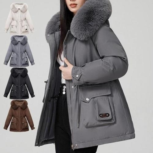 |CCJ6CF1|여성용 탈부착 퍼카라 겨울 누빔 패딩 허리 조절 스트링