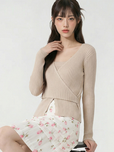 [탑걸] 멀티 랩 리브 니트 탑_T611TP127