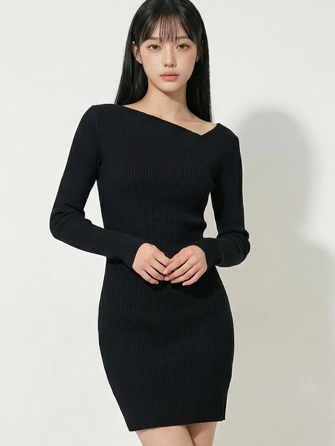 [탑걸] 언발란스 리브 니트 드레스_T611DS504