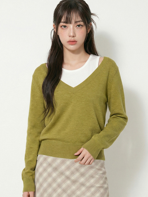[탑걸] 딥 브이넥 슬리브리스 세트 니트_T611TP129