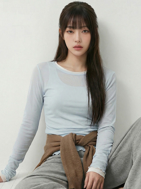 [탑걸] 웨이브 메쉬 롱 슬리브 탑_T611TP124