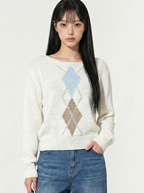 [탑걸] 라운드 아가일 니트 탑_T611TP125