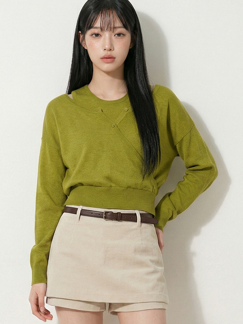 [탑걸] 버튼 랩 레이어드 니트 탑_T611TP126