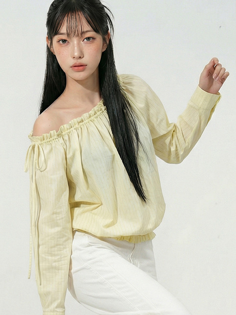 [탑걸] 파인 스트라이프 원숄더 블라우스_T611TP120