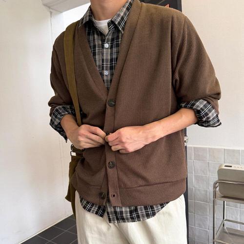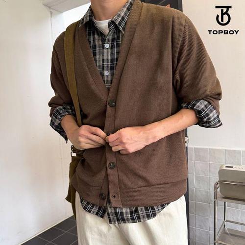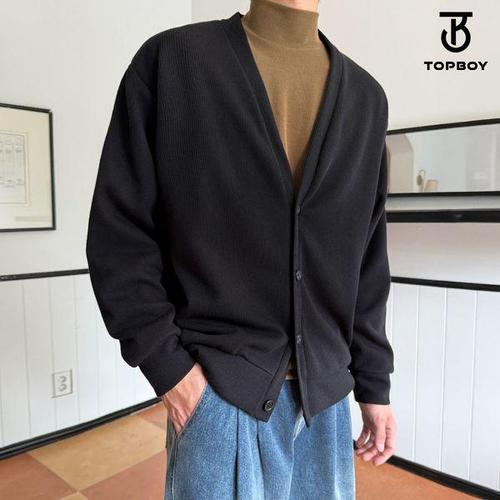 [탑보이][탑보이] 베이직 솔리드 남성 V넥 니트 가디건 (CA297)