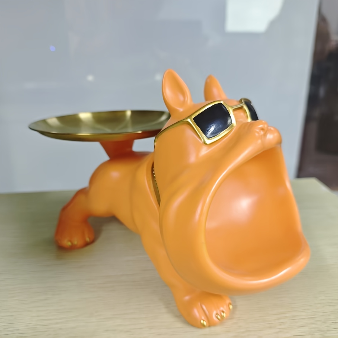 TEMU 1개 대형 입 불독 조각상 회전 가능 - 레진 프렌치 불독 피규어 안경 & 시계 포함, 귀여운 키 보관함, 키 홀더 & 신발 정리대, 홈 데코, 사무실, 선물 (비식품 접촉), 크리스마스 선물로 최고