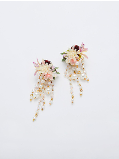 [피버리쉬] 플라워 블라스트 스몰 태슬 귀걸이 버건디