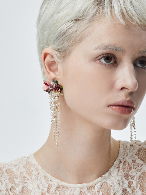 [피버리쉬] 플라워 블라스트 라지 태슬 귀걸이 버건디