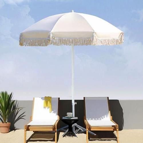 고급 인테리어 태슬 파라솔 180cm 십자받침대 아이보리 감성 인테리어 캠핑 비치 테라스