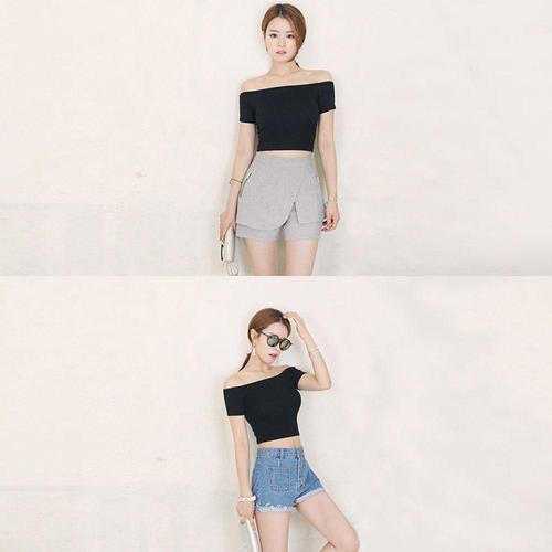 [다잇템]여자 슬림 보트넥 세미 탱크 미니멀리즘 티셔츠