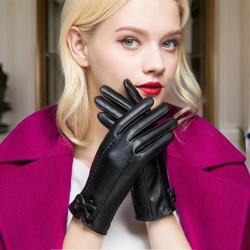 [다잇템][다잇템] 여성 자수 터치 리본 레더 장갑_19642130_588872
