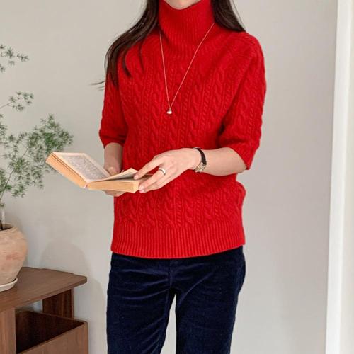 [옷자락] 여자 나그랑 꽈배기 폴라 겨울반팔 7컬러 데일리 니트