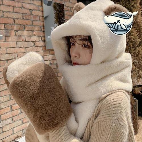 앙큼한토끼곰후드머플러 넥워머 털모자 머플러 목도리