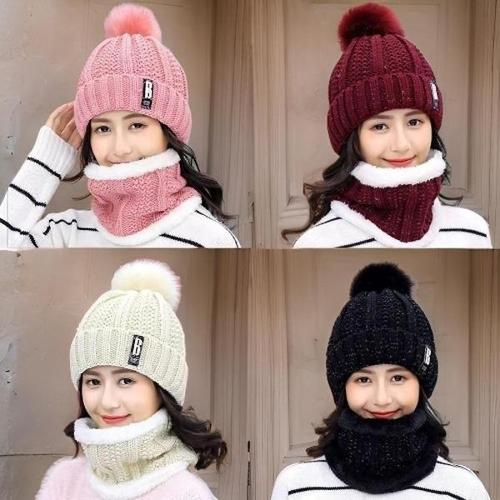 [셀러허브_여성트랜드패션]머플러 모자 세트 겨울 목도리 방울모자 겨