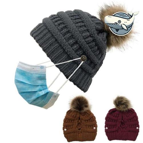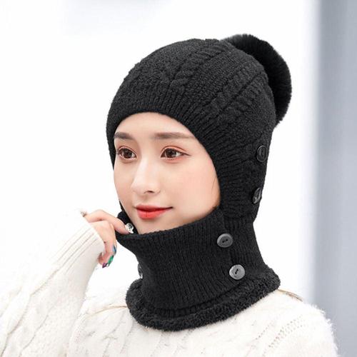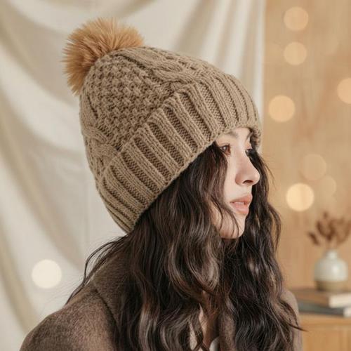 여성 겨울 따뜻한 니트 방울털 마스크 비니 WFHIOEI